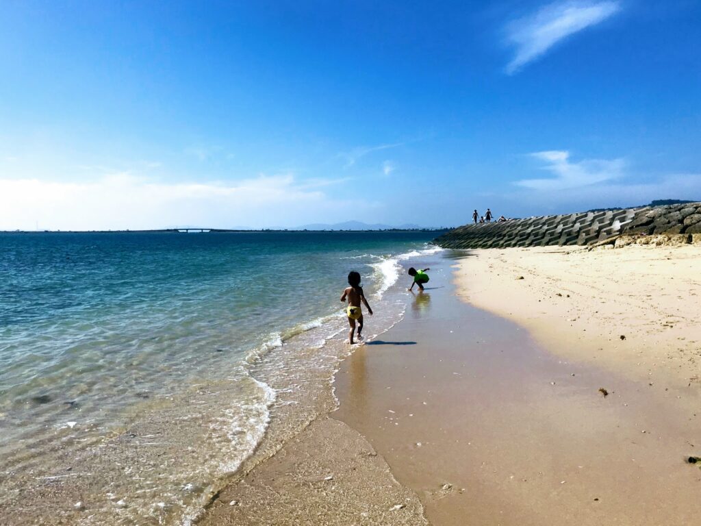 指定管理のライフセーバーや海中の安全ネットは設置されていませんが、穏やかな波と遠浅の砂地は、